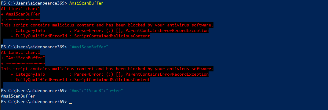Whatever the content may be or however the function may work, the result from these function determines whether our fileless content is malicious or not. This is the key to our AMSI bypass.