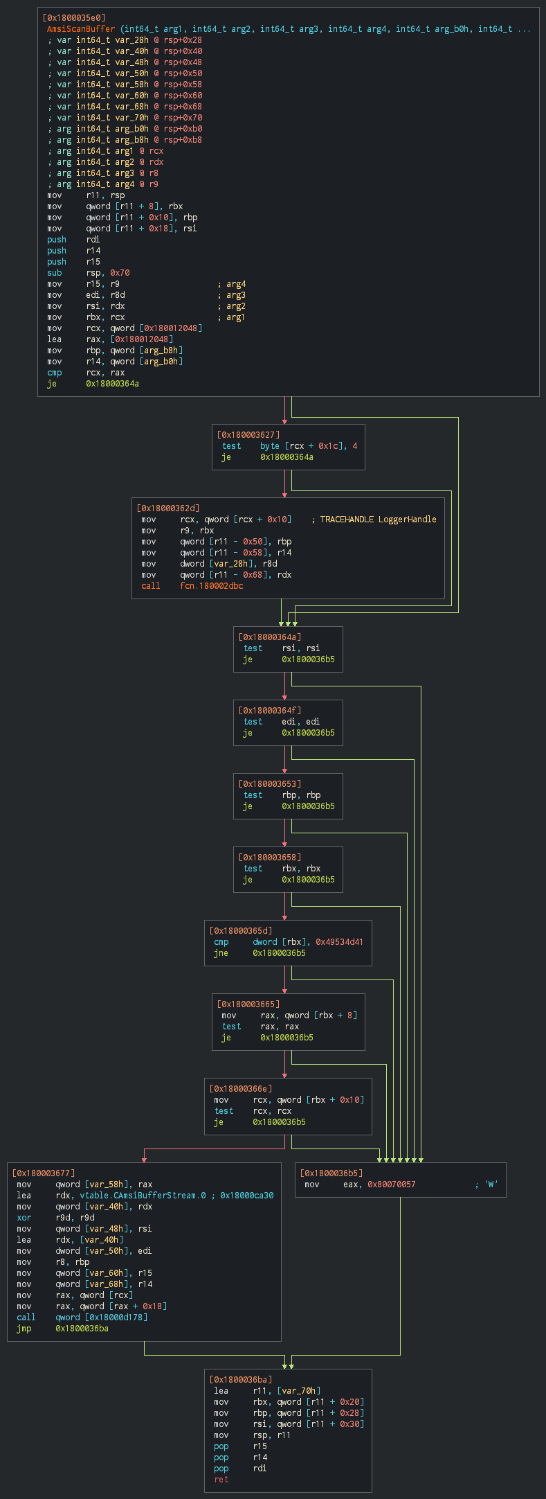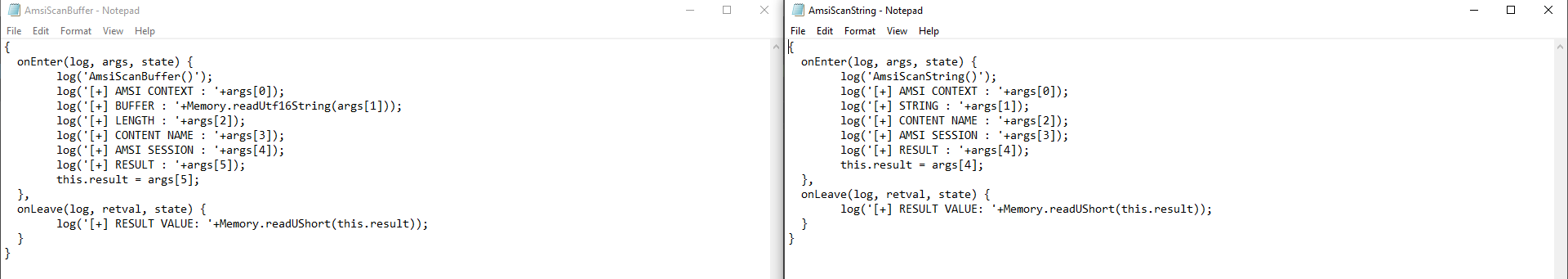 For AMSI, the important functions which deals with the scanning process we need to focus are AmsiScanString and AmsiScanBuffer