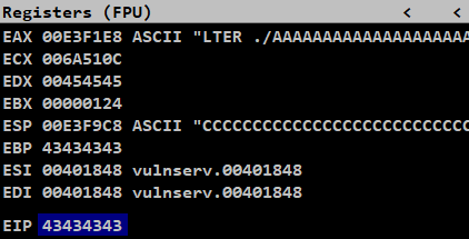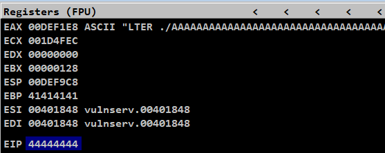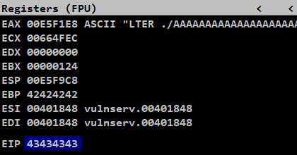 We have successfully crashed our server and the payload data begins with LTER ./ which is made up of 7 bytes